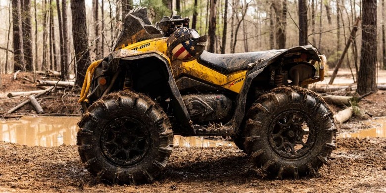 The 2023 Can-Am Renegade also has a smooth, sleek design. It performs well on trails and muddy surfaces, is available in a variety of colors, and is easy to control. With large wheels, ergonomic brakes, and a compact design, this ATV could be exactly what you need.
